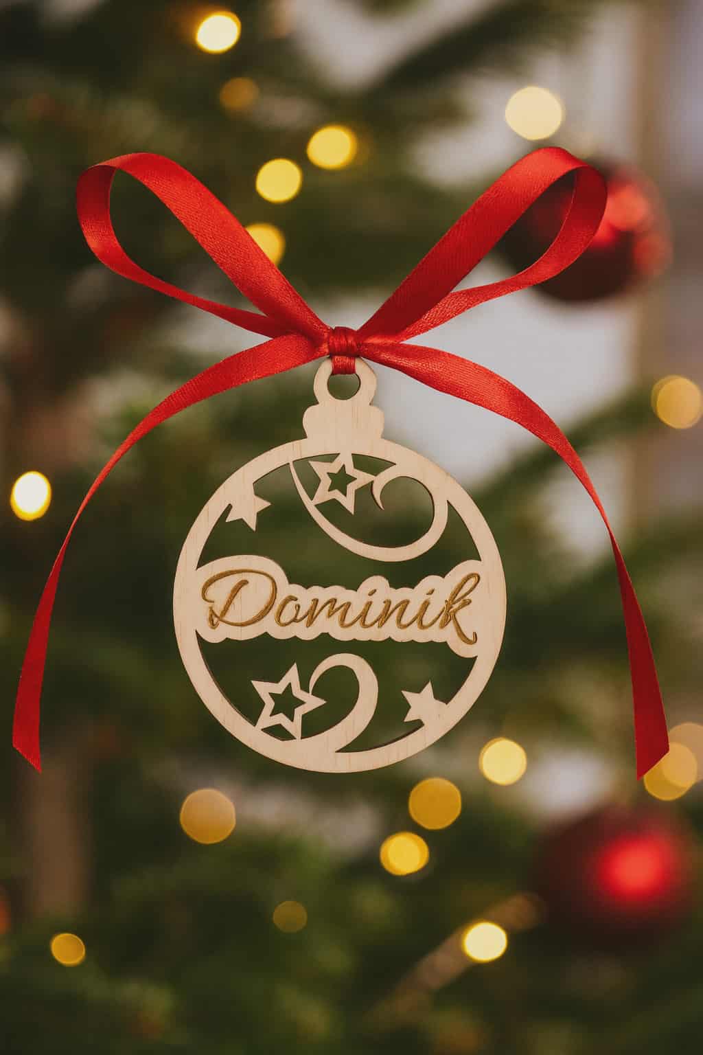 Nasza drewniana bombka z wyciętym motywem gwiazdek to subtelna i elegancka ozdoba choinkowa, która łączy prostotę z wyjątkowym charakterem personalizacji. Każda bombka wycinana jest laserowo ze sklejki drewnianej, dzięki czemu zachowuje niepowtarzalne usłojenie i naturalne piękno materiału.
